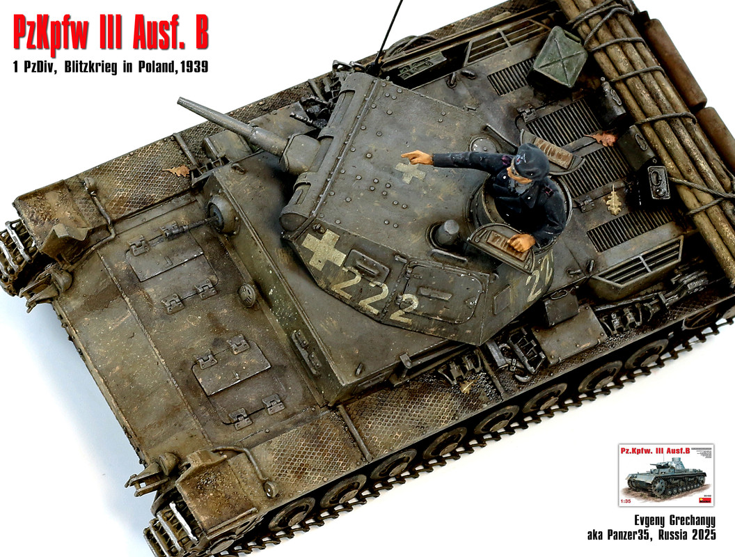 Pz III Ausf. B – вторая модификация этого немецкого танка, построенная в 1937 году фирмой Даймлер-Бенц. Согласно новейшей теории Блицкрига, 15-тонные танки Pz III должны были стать основными ударными танками германских Панцертруппен. Общая концепция этого танка с экипажем из 5 человек, где командир не занимается ведением огня из пушки, а руководит боем, при этом прекрасно все видит из своей командирской башенки, была выбрана правильно. А вот техническая реализация этого проекта поначалу хромала из-за отсутствия опыта строительства танков у германской промышленности.