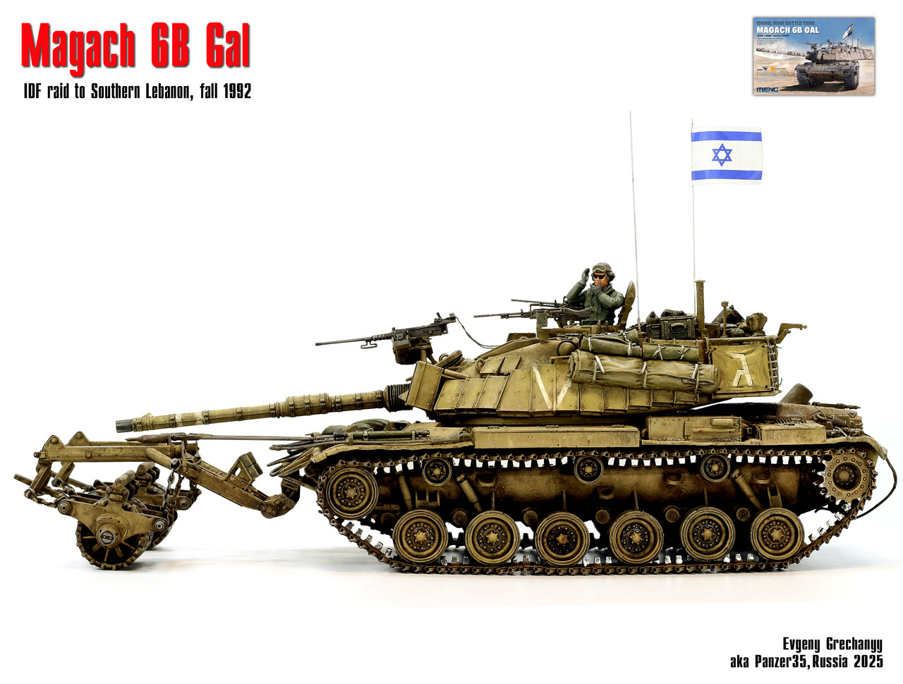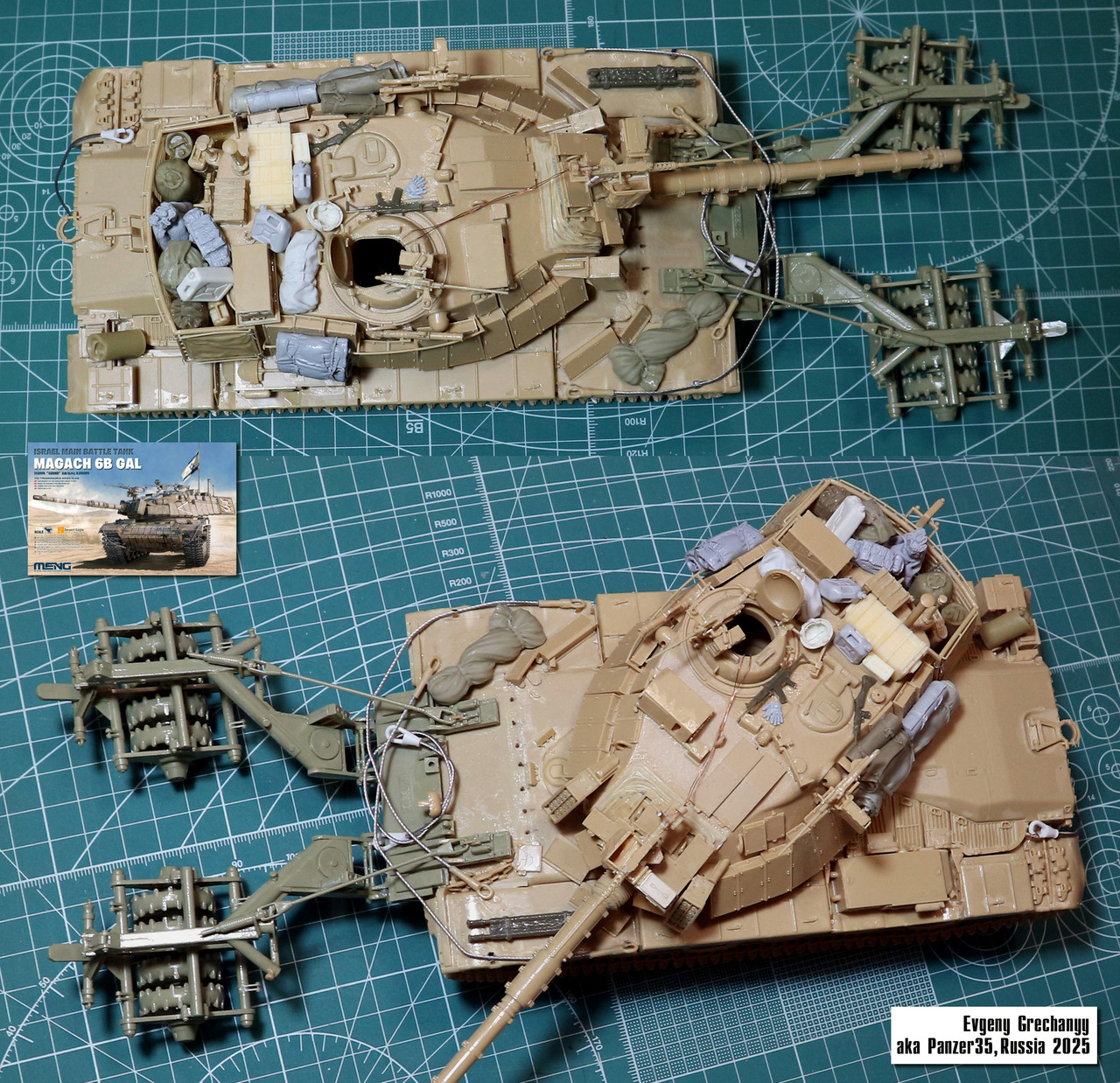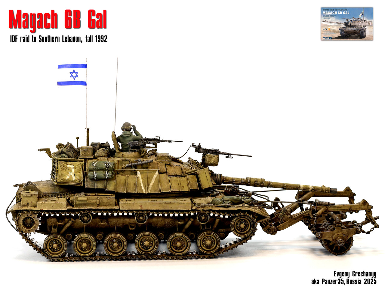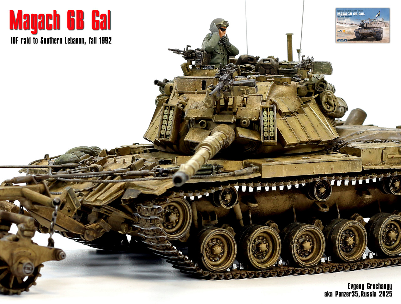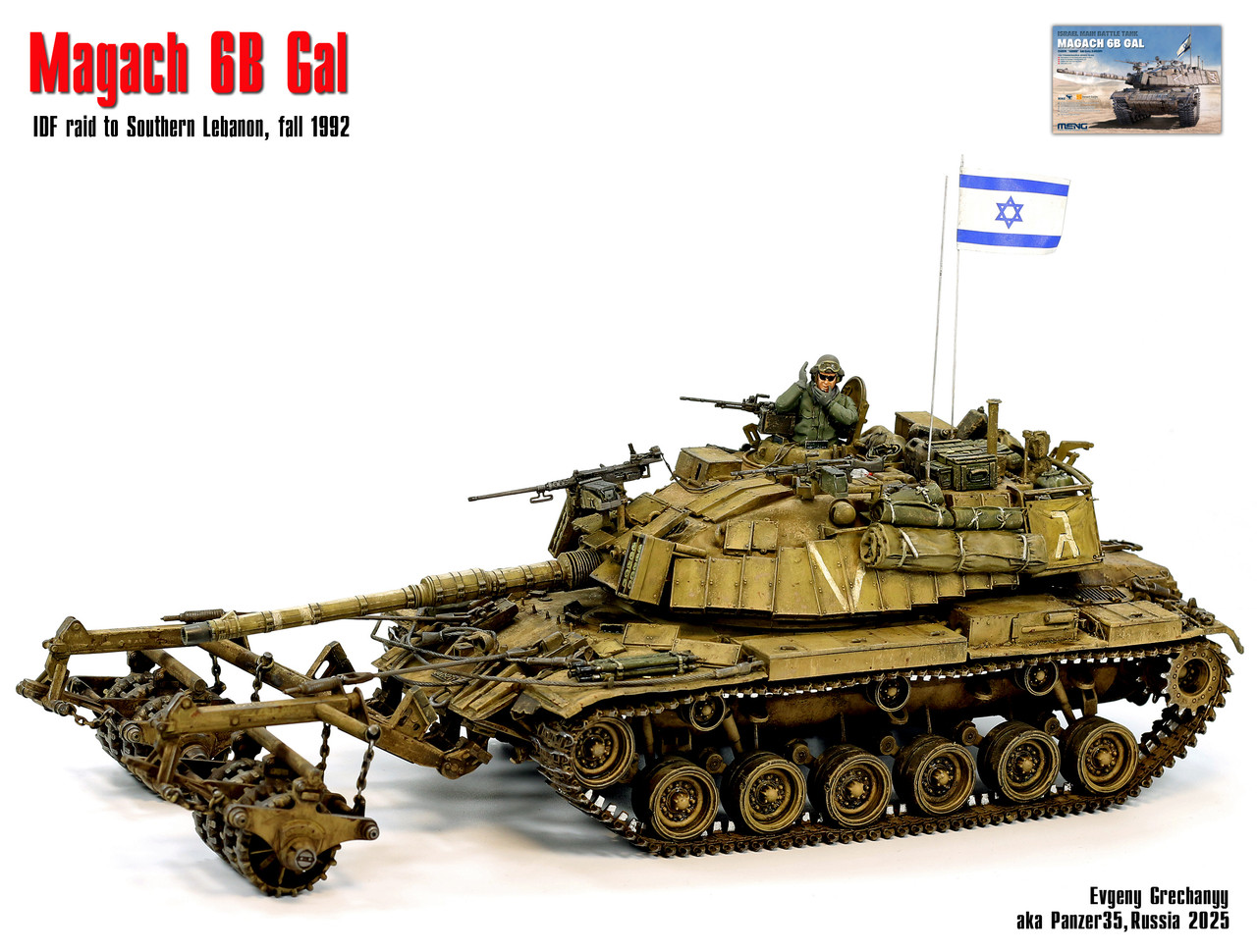 Модель Magach 6 B Gal китайская фирма Менг выпустила в 2019 году. До нее израильские М-60 делали корейская Академия и итальянская Италери – это были машины на первую Ливанскую войну 1982 года (если заменить ствол). В 2000-е годы корейская Legend выпустила смоляной конверсионный набор на эту модель, для превращения академовского «Магаха» в Magach6BGal.Даже купил эту конверсию, но так и не воспользовался – новая модель от Менга сделала ее ненужной.