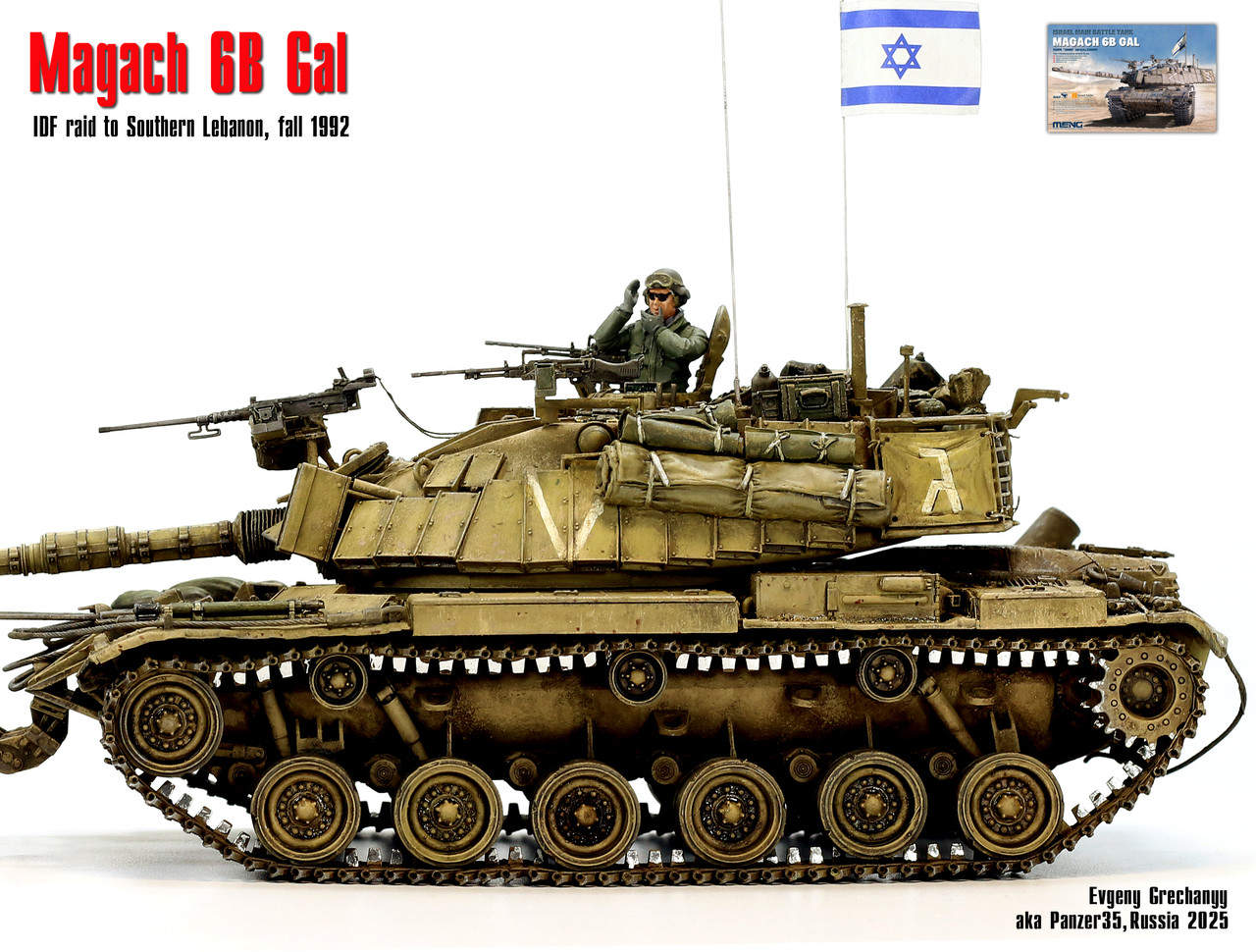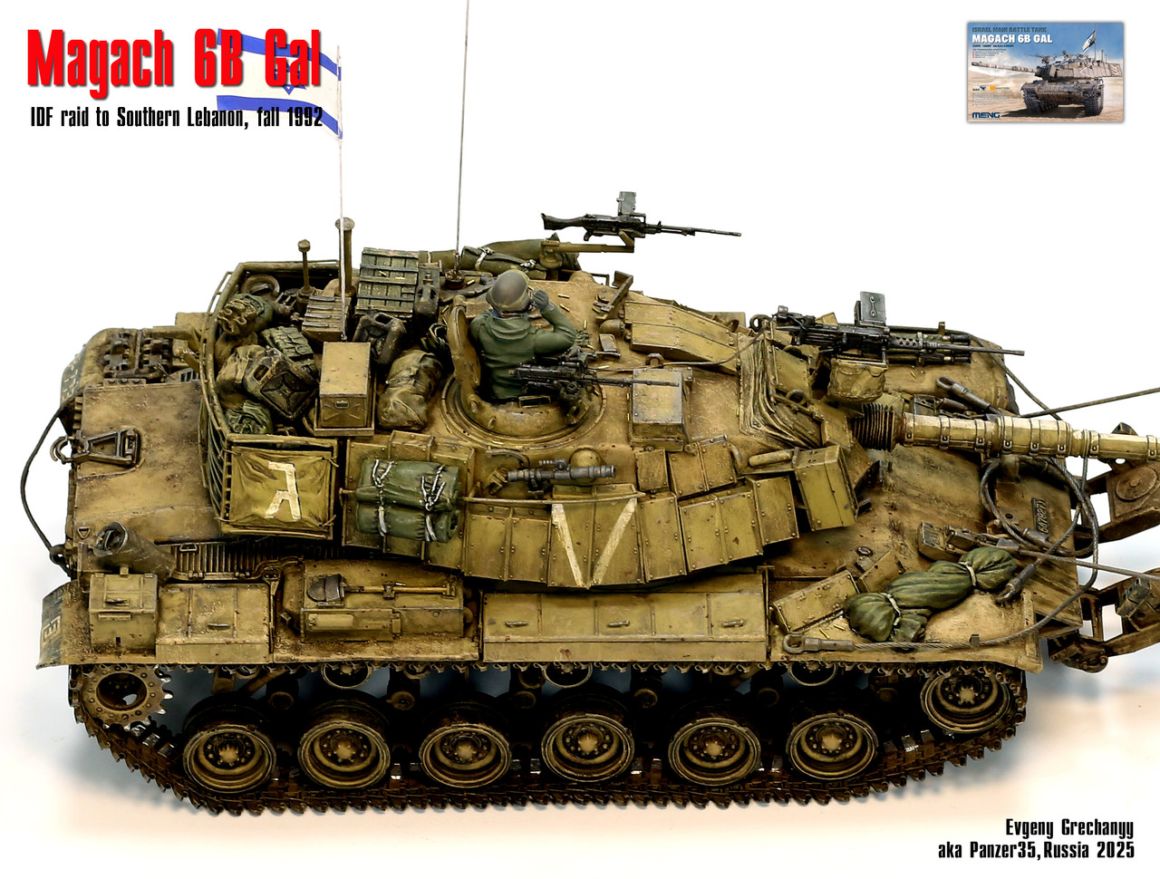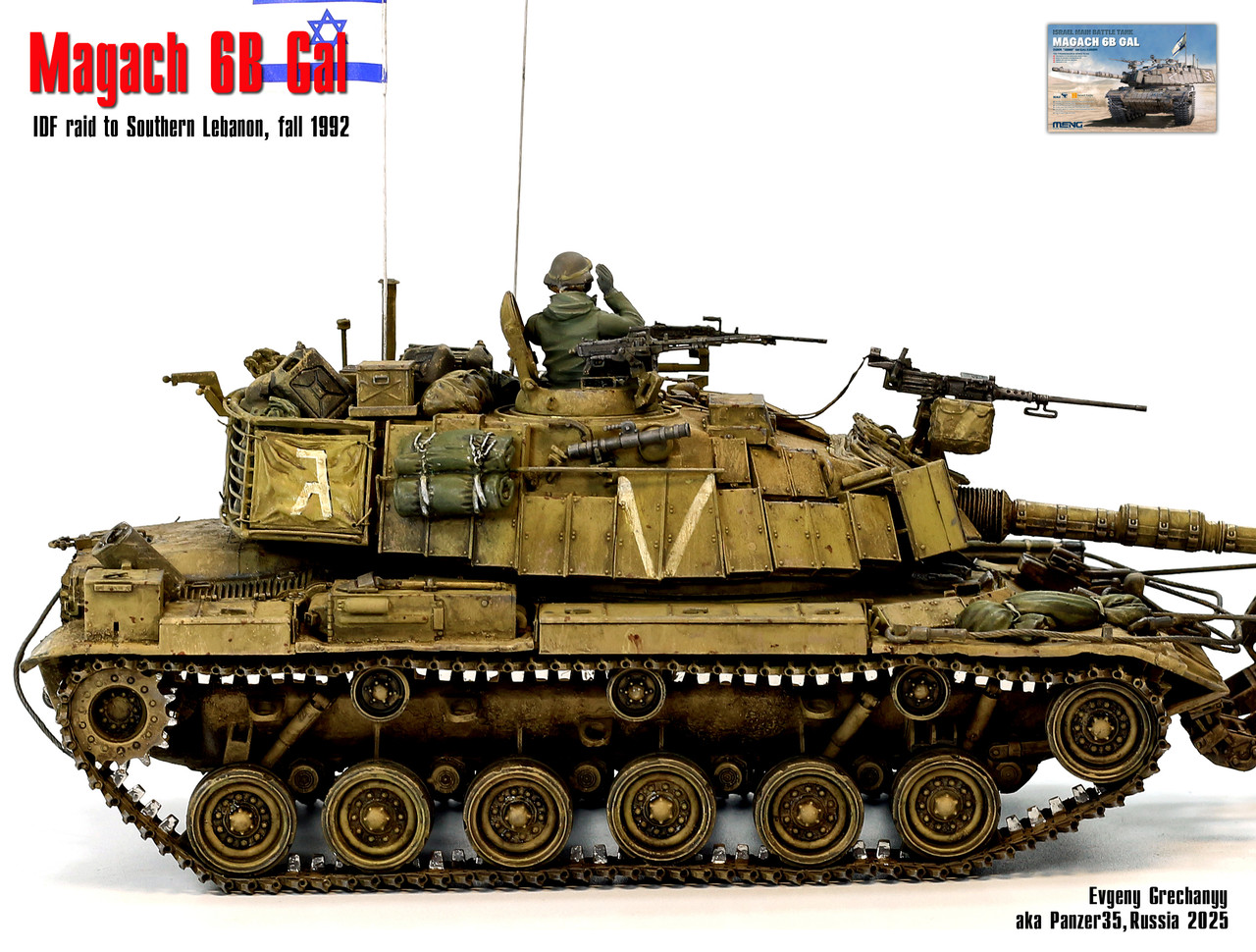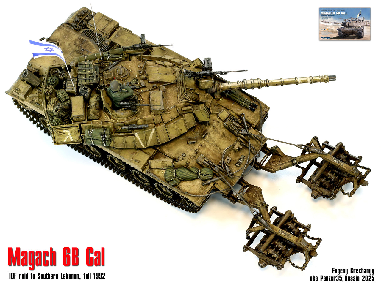 Модель Magach 6 B Gal китайская фирма Менг выпустила в 2019 году. До нее израильские М-60 делали корейская Академия и итальянская Италери – это были машины на первую Ливанскую войну 1982 года (если заменить ствол). В 2000-е годы корейская Legend выпустила смоляной конверсионный набор на эту модель, для превращения академовского «Магаха» в Magach6BGal.Даже купил эту конверсию, но так и не воспользовался – новая модель от Менга сделала ее ненужной.