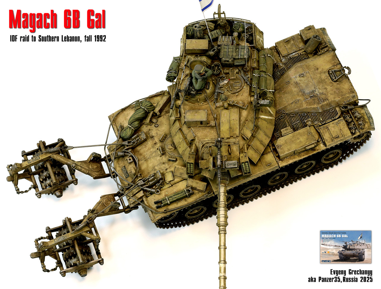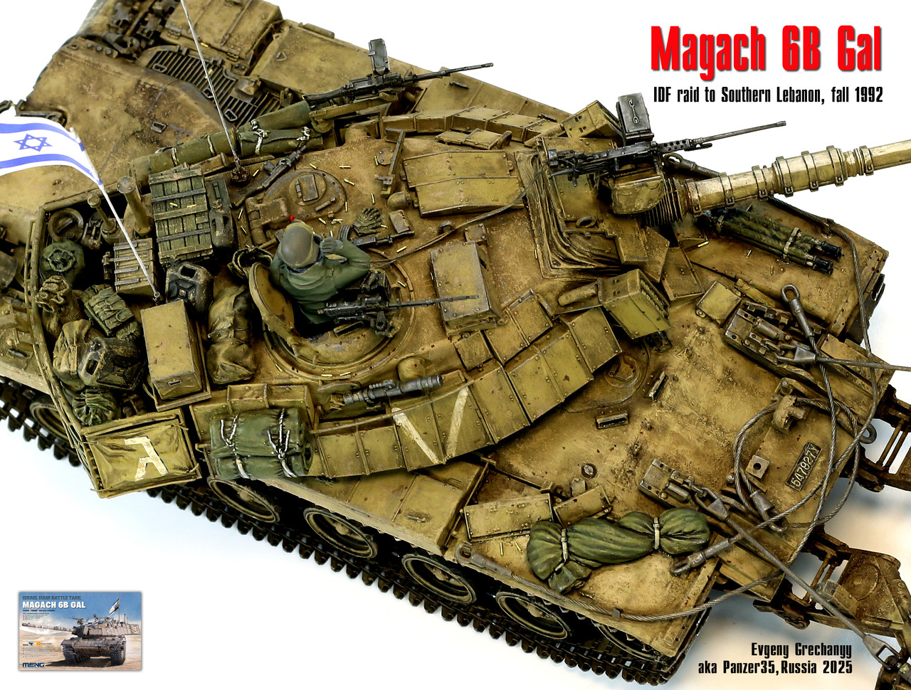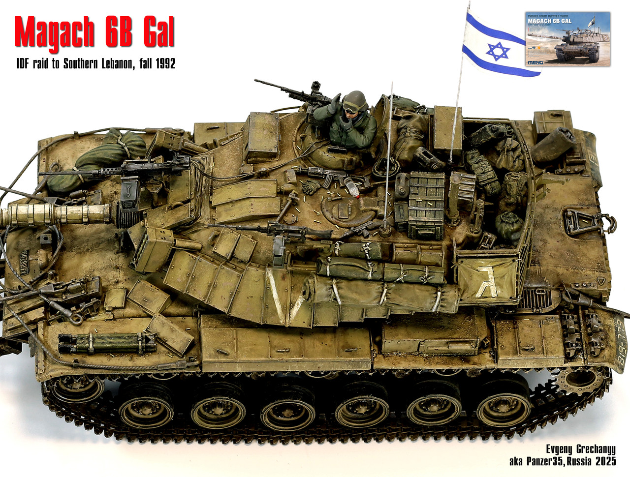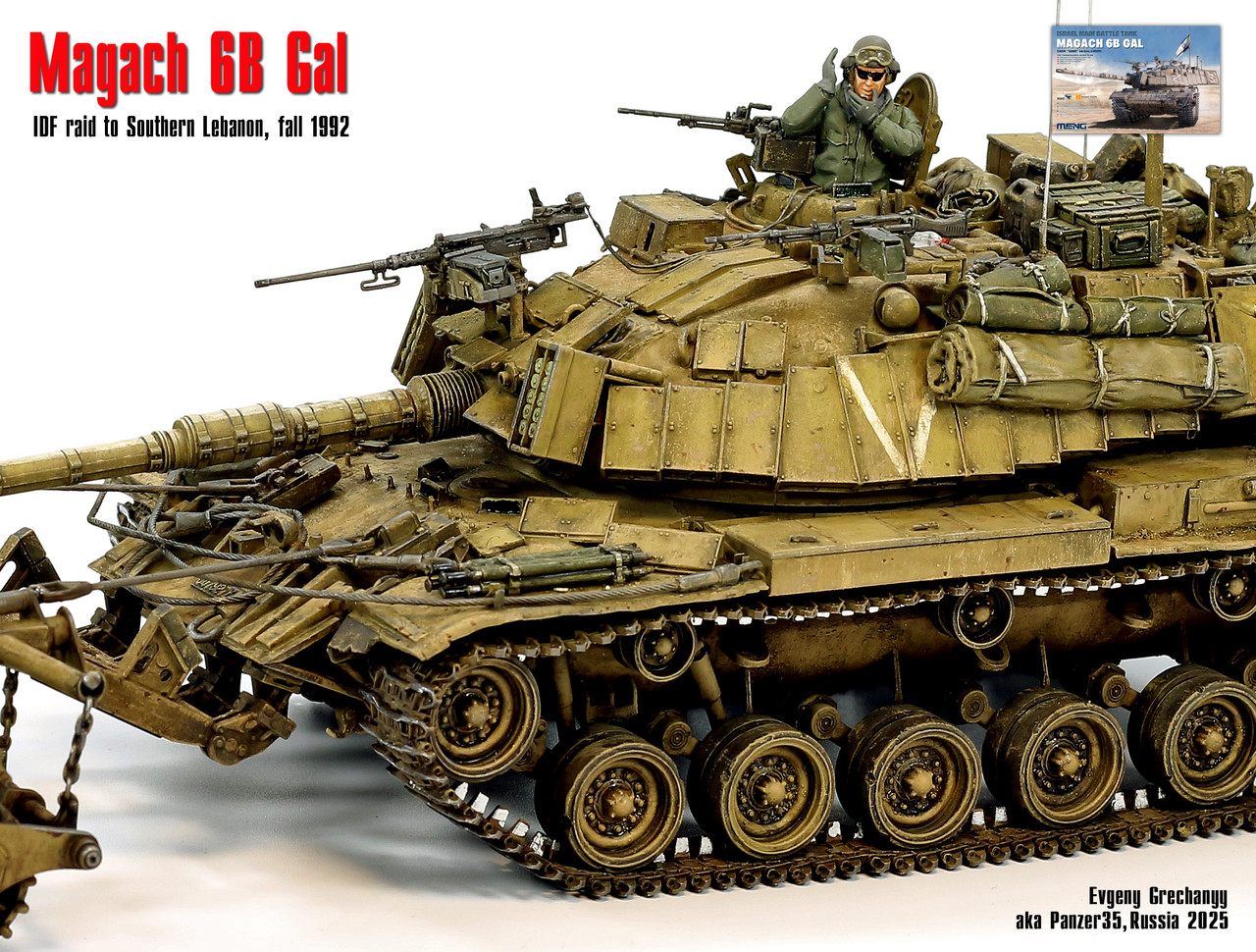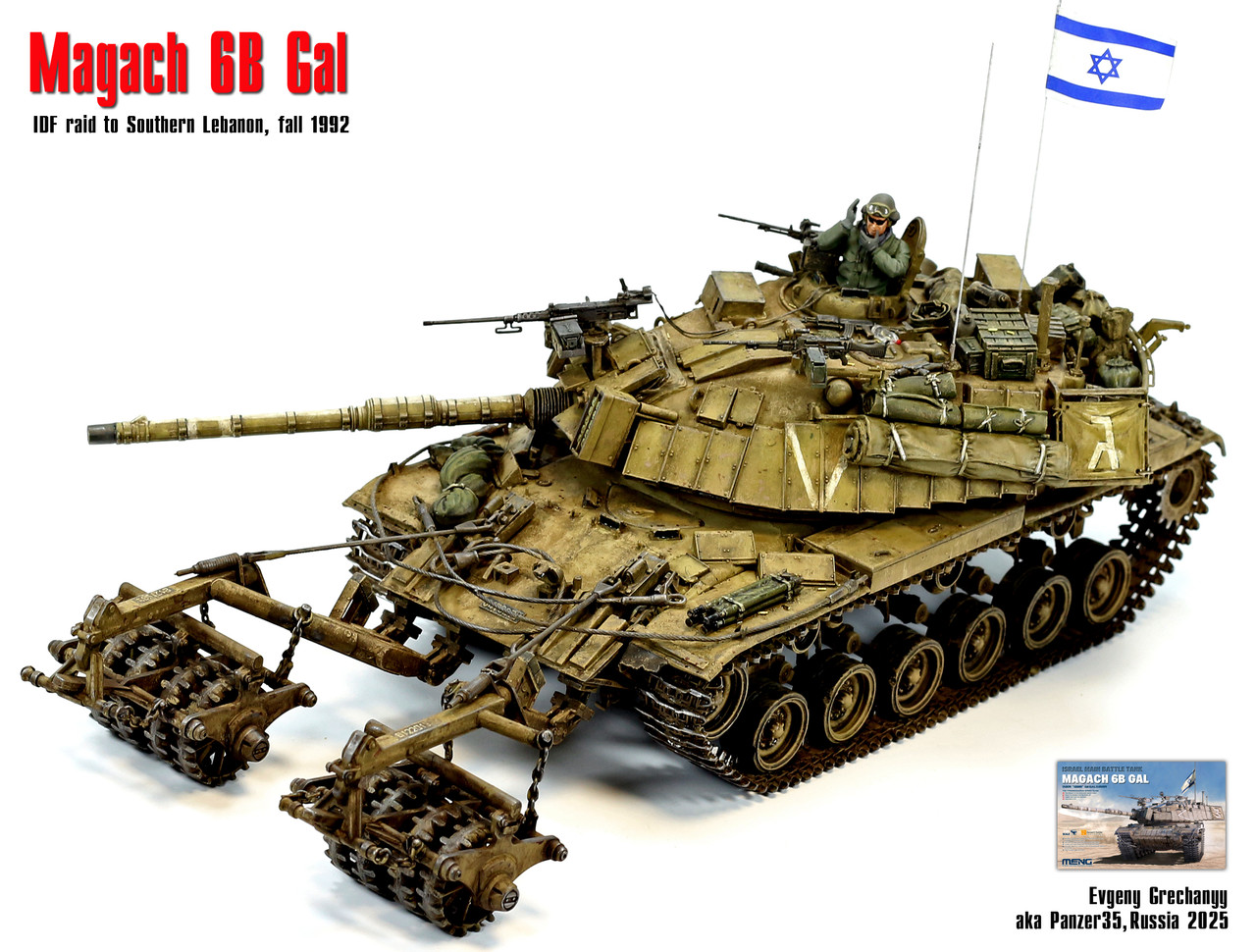 Модель Magach 6 B Gal китайская фирма Менг выпустила в 2019 году. До нее израильские М-60 делали корейская Академия и итальянская Италери – это были машины на первую Ливанскую войну 1982 года (если заменить ствол). В 2000-е годы корейская Legend выпустила смоляной конверсионный набор на эту модель, для превращения академовского «Магаха» в Magach6BGal.Даже купил эту конверсию, но так и не воспользовался – новая модель от Менга сделала ее ненужной.