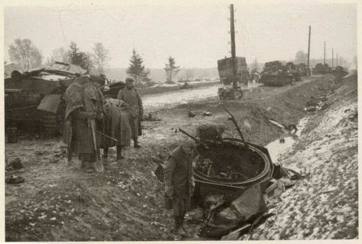 | На диораме с краю подставки будет отрезок дороги Варшавского шоссе, вдоль которой были установлены телеграфные столбы и дренаж вдоль дороги. На исторических фотографиях можно все это увидеть.