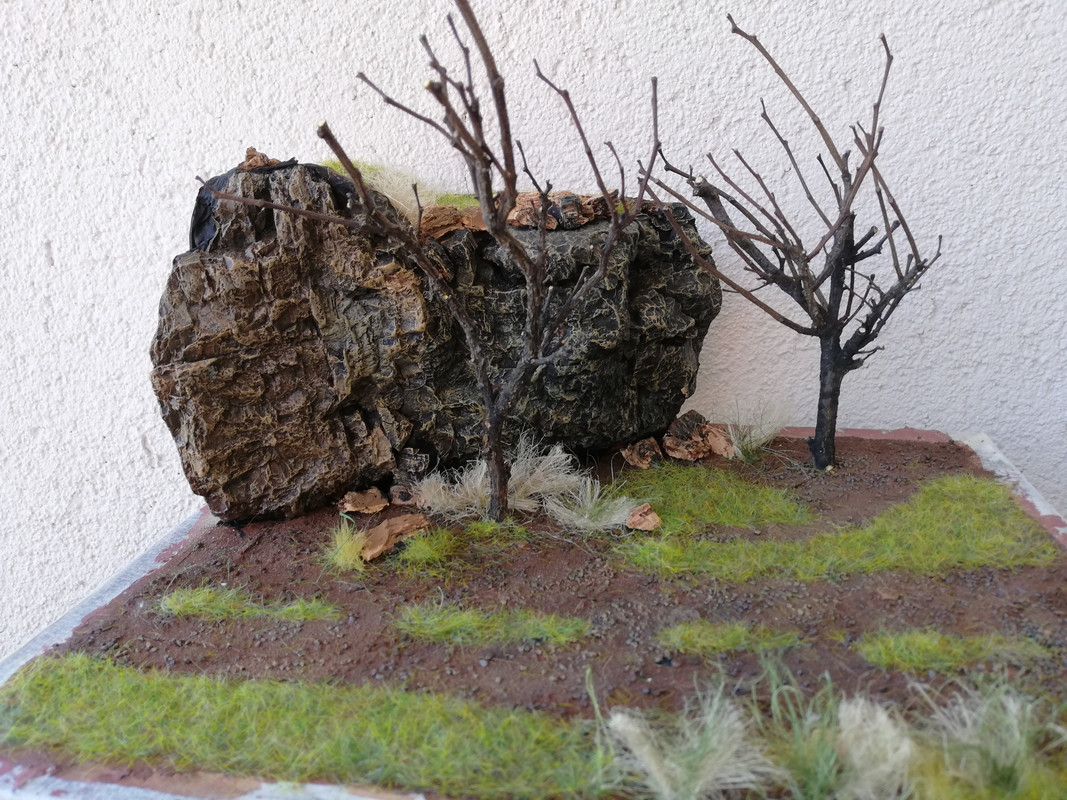 | После участия в последнем ГБ задумался о том,что не уделял внимания основанию под модели.Строить для каждой модели минидиораму-слишком жирно.А что если применить опыт 100 летней давности в фотоателье. Тогда фотографы всех снимали на фоне красивого задника,разрисованного как правило на холсте. А что если изготовить кусок местности на котором можно снимать модели? Танки,автомашины,фигурки? Модели разные,а задник-фон-один? Поставил,отснял,убрал. У меня есть отлитые скалы,есть деревья и листва с флоком. Решил сделать кусок местности.Предварительное название "Осень в горах".