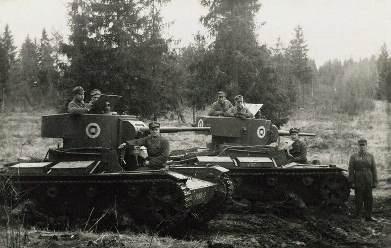 Танкисты финской армии во время тактических учений на танках Т-26, 1947г.