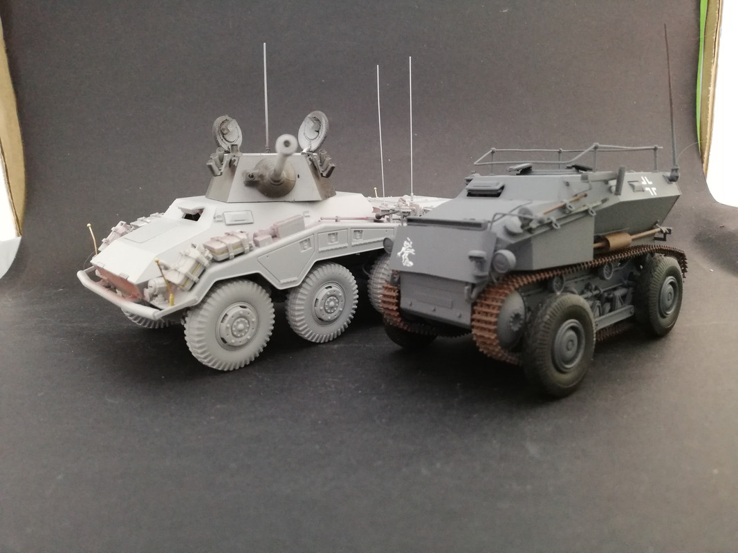 | Попробовал сухие декали от Micro world.Валяются уже лет десять.Ничего.Нормально легли. Интересное получилось у меня собрание: германский бронеавтомобиль 1939 и бронеавтомобиль 1945.Начало войны и конец.