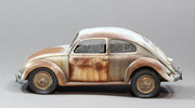 | Прикольная работа)Художка на высоте.Но видимо акцент делался на VW ибо всю картину портит забор и придает диорамке игрушечность.Он просто несуразныЙ.Частота досок,а при в взгляде на ведро думаешь что он и вовсе металлический.Пачка сигарет на инструментальном ящичке в треть головы персонажа и отвертка рядом великовата.Н у и по логике сюжета прям просится домкрат туда.