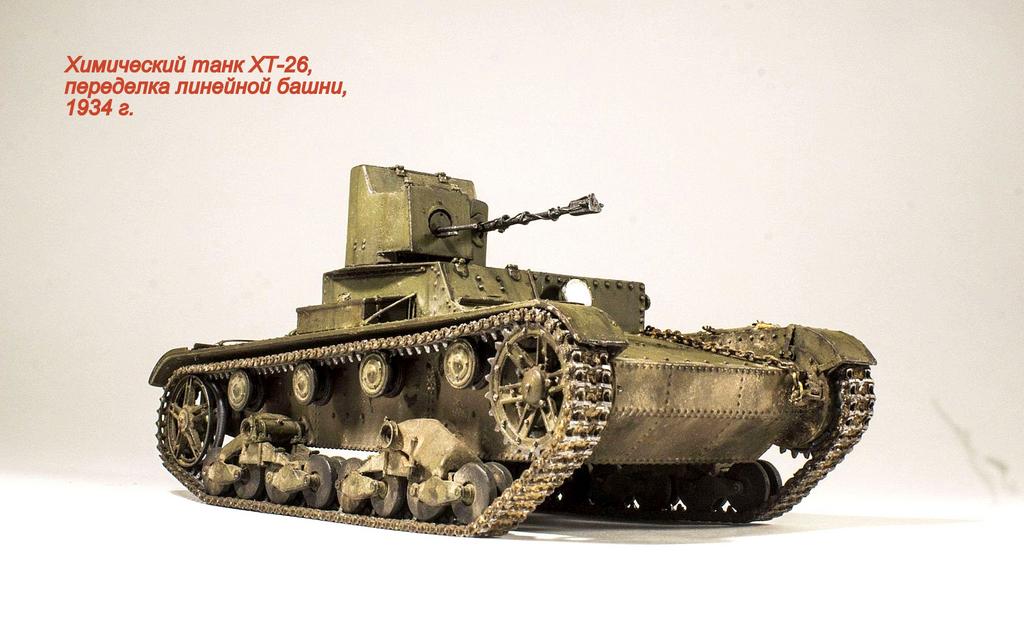 В "стройке" участвуют: модель Т-26 от "ХоббиБосса" № 82495, смоляное дополнение ХТ-26 от "Studio Perfect Mode", металлические гусеницы производства "Лейбъ-компании", ходовая часть "старого" типа от "Комплект ЗИП", точеный ствол пулемета ДТ от "Магик Моделс", остатки различного травления.