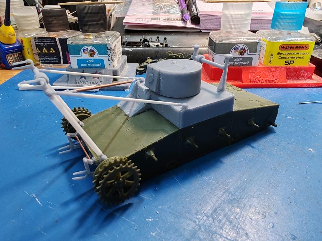 Ох и любят наши производители расчленять модель на множество трудно собираемых деталюшек. Я понимаю, что им так проще Но каково моделисту этот пазл собирать. А ведь при нынешних технологиях этот конверсионный набор можно было бы напечатать из 5-6 деталей, собираемых вместе за полчаса. Года полтора назад я нарисовал и напечатал одной единой деталью конверсию хобби-боссовского Т-26 в танк-цистерну ТР-26Ц: https://iimg.su/i/g6Ialf https://iimg.su/i/v8zVpz