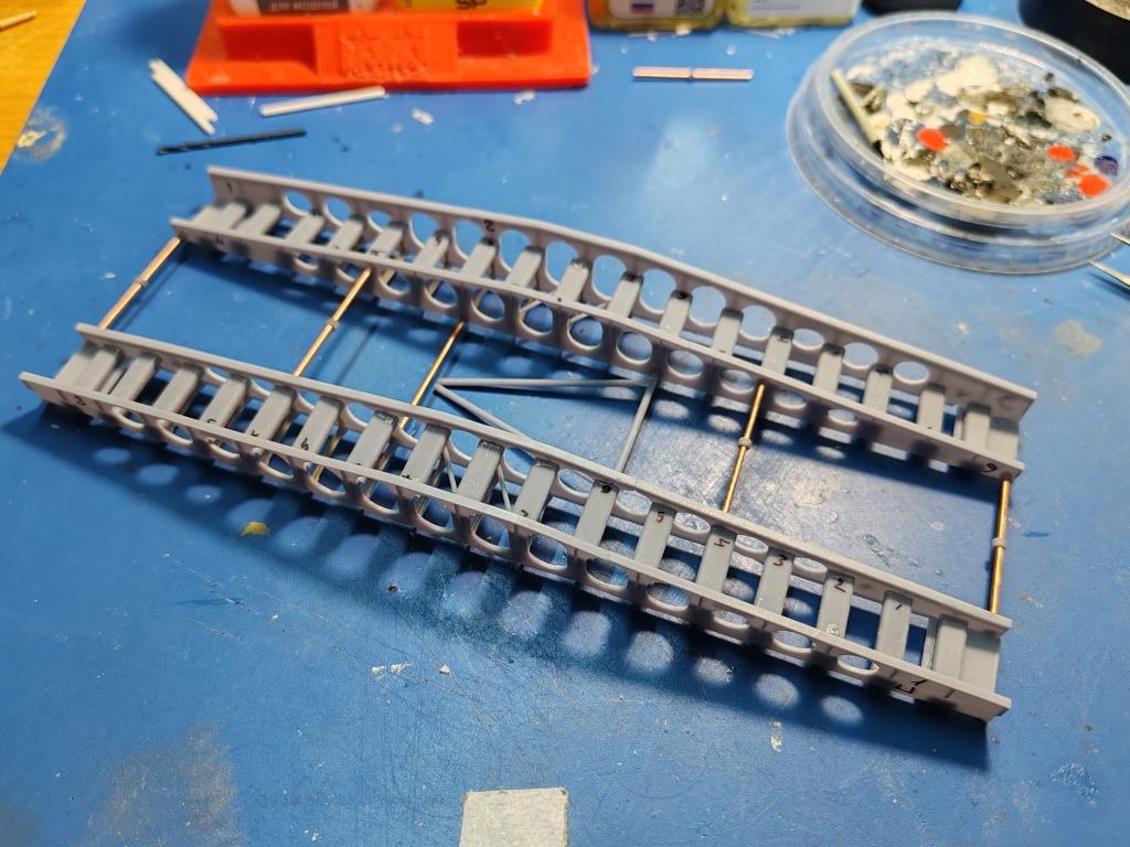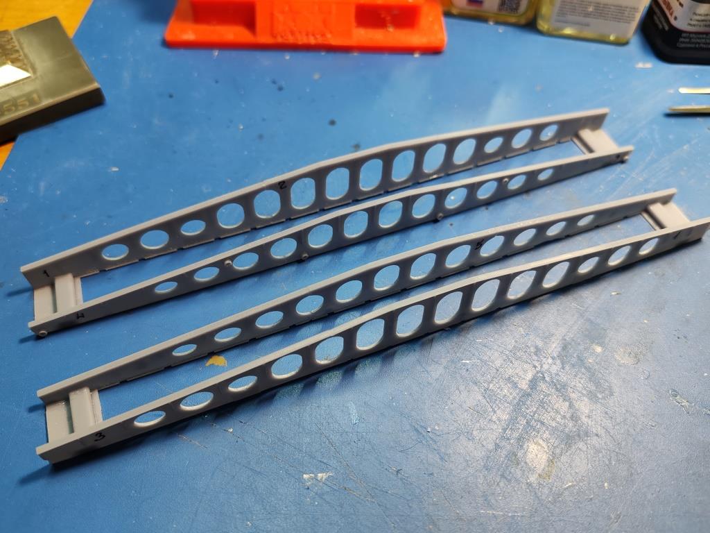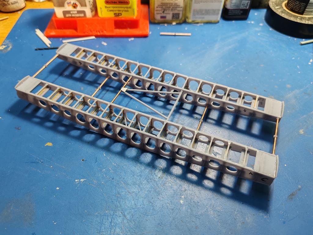 В наборе имеются комплект прутков, которые по идее должны совпадать по диаметру с деталями бонок, но у меня так не вышло. не могу сказать что тому виной, может шутка принтера при печати мелочевки, может что еще. Однако толщина заготовки соединителей моста не совпадает с диаметром отверстий.