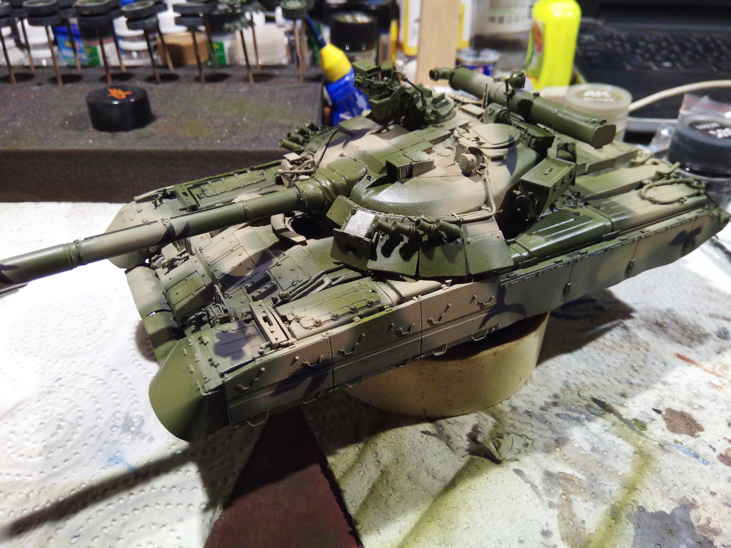 | Промежуточный результат покраски. Сильно ногами не бейте, крашу модель впервые, но, вроде, не испортил результат запила. С чем не вышло - не попал в оттенок серого цвета камуфляжа.