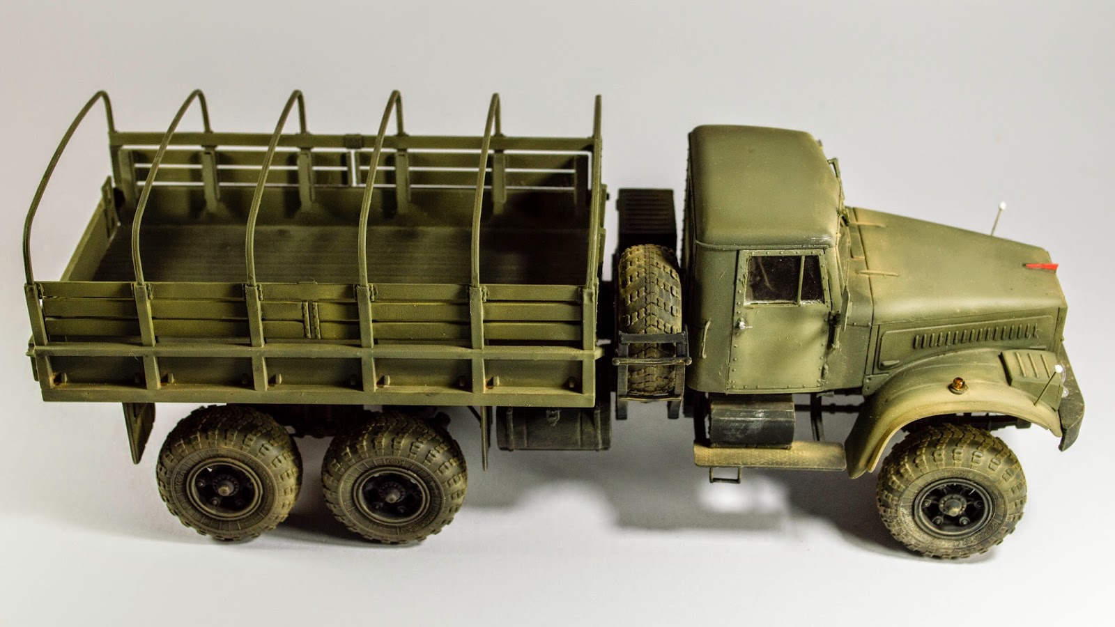 | Андрей, сборка нормальная как по мне, но окраска... Впечатление что машина собрана как в песенке "слепила из того что было", кабина, капот, кузов, все в признаках модуляции, но не скорострельной, без использования каких-либо масок. Там где должна быть тень, у тебя наоборот, светлые части, и наоборот. Насколько я помню из курса рисования, человек на уровне подсознания подразумевает что свет у нас сверху (Солнце), соответственно, все что чем то прикрыто, в тени. И так же, все что ближе к глазу, светлее, а то что дальше, темнее. Почему двери кабины светлее чем крыша? Куда попадает больше света? Где номера? Буксировочный трос? Лампочки автопоезда должны быть на крыше (на случай поездки с прицепом)? Я конечно понимаю что "Хамброл", не самая легкая в работе краска, к ней надо приноровиться, но все таки, если уж решил делать модуляцию, то тогда не брезгуй и за кисточки взяться.