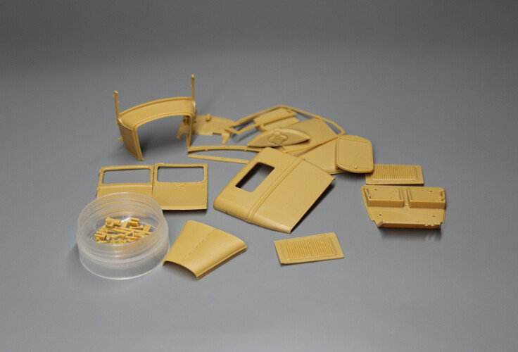 | Эта куча деталей скоро должна превратиться в кабину. В целом сделано вроде неплохо, но некоторые элементы исполнения деталей мне не понравились.Придется немного доработать. Hobby Boss сделала рычаг демультипликатора, за что им огромное спасибо,- он мне пригодится в другой модели на базе шасси ГАЗ-3А. На ГАЗ-АА/ММ он не использовался, точнее его там просто не было.