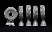 1. Общий вид, нагрузка. У Арматы колеса традиционно выполнены в одну деталь, что мне кажется плюсом. Нагрузка опять же более выраженная и актуальная у Арматы (см фото, он даже на опорах сильно давит). Очень прикольно смотрятся в живую разнонагруженные колеса (передние нагружены чуть меньше, чем задние). Ну и бич большинства колес MiniArm всего два разных рисунка боковины, если на 2х осном транспорте это смотрится прекрасно, то на 4х осном немного странно, у Армы же все 4!!! колеса с разным рисунком.