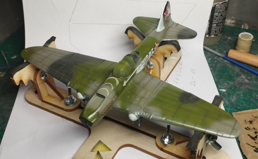 | Цитата Дык, а где "дрова"-то? Следите за форумом,значит еще не все потеряно  Мне ортодоксальная матчасть с пеной у рта не очень нравится,надо находить компромисс и не ставить громкие заголовки при открывании темы по постройки модели.Собрал тут как-то старый набор Ил-2 от Звезды в 72,поставил деки "Мститель" 25,а оказалось вариант сказочный, нарисованный в фотомонтаже Спасибо Андрею Солодову,помог разобраться,так что без матчастноков тоже плохо  Вот на стапелях был,сейчас уже на полке