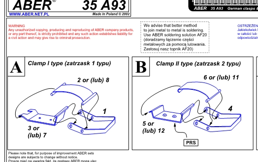 | На аберовской инструкции хорошо показано (в драгоновской догадайся сам ).Я собираю в такой последовательности- сначала сгибаем все три детали в такой вид как показано,потом в петлю с четырьмя отверстиями вставляем планку во вторые отверстия как в инструкции,а потом аккуратно собраные эти две детали вставляем в основание замка (крайние отверстия петли)ну и собраный замок потом открывается -закрывается как положено ГЦитата andreiali (  ) И нашел Абер,надо будет заказать где нашли? если не секрет)